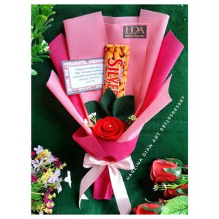 5 bunga mawar + wrapping paper + pita. Tak yah nak serabut dengan bunga kan. Buket snack coklat silverqueen/ kado wisuda/birthday/anniversary. Buket jajanan cokelat menjadi ide merangkai berikutnya yang bisa .